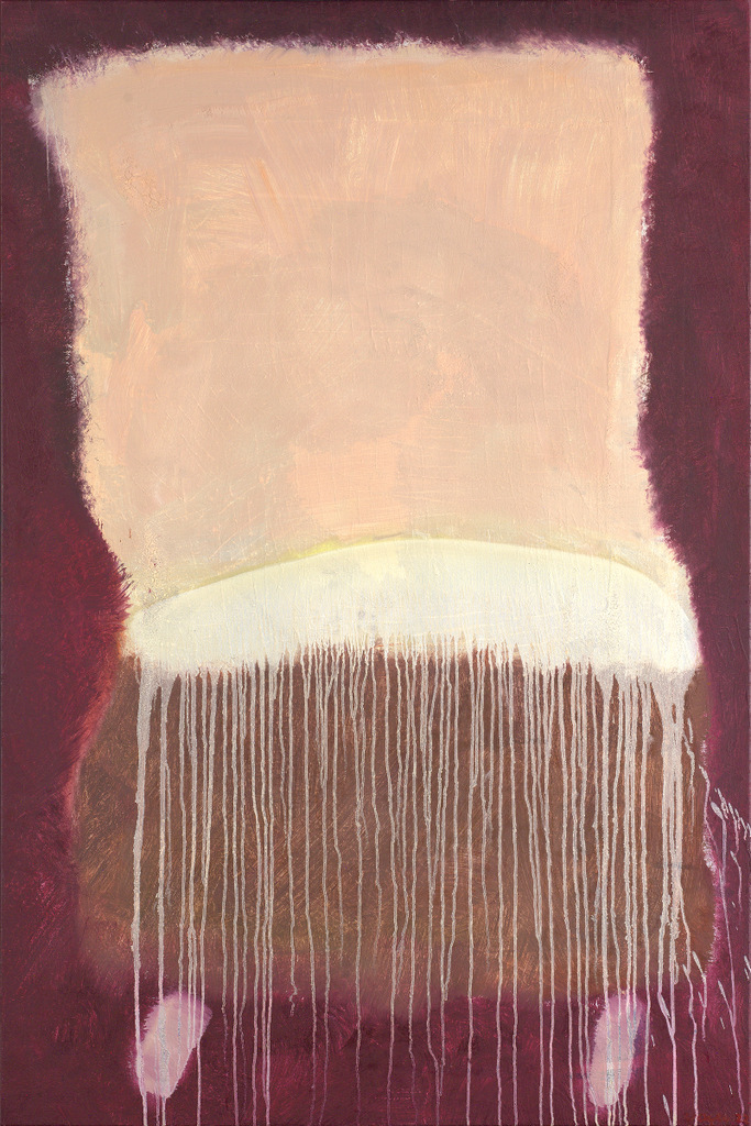 Opeens was daar een stoel. Ongewild en ongedacht. Grappig is dat er dunnetjes een onderschildering doorheen komt, dat maakt dat de stoel versleten lijkt.