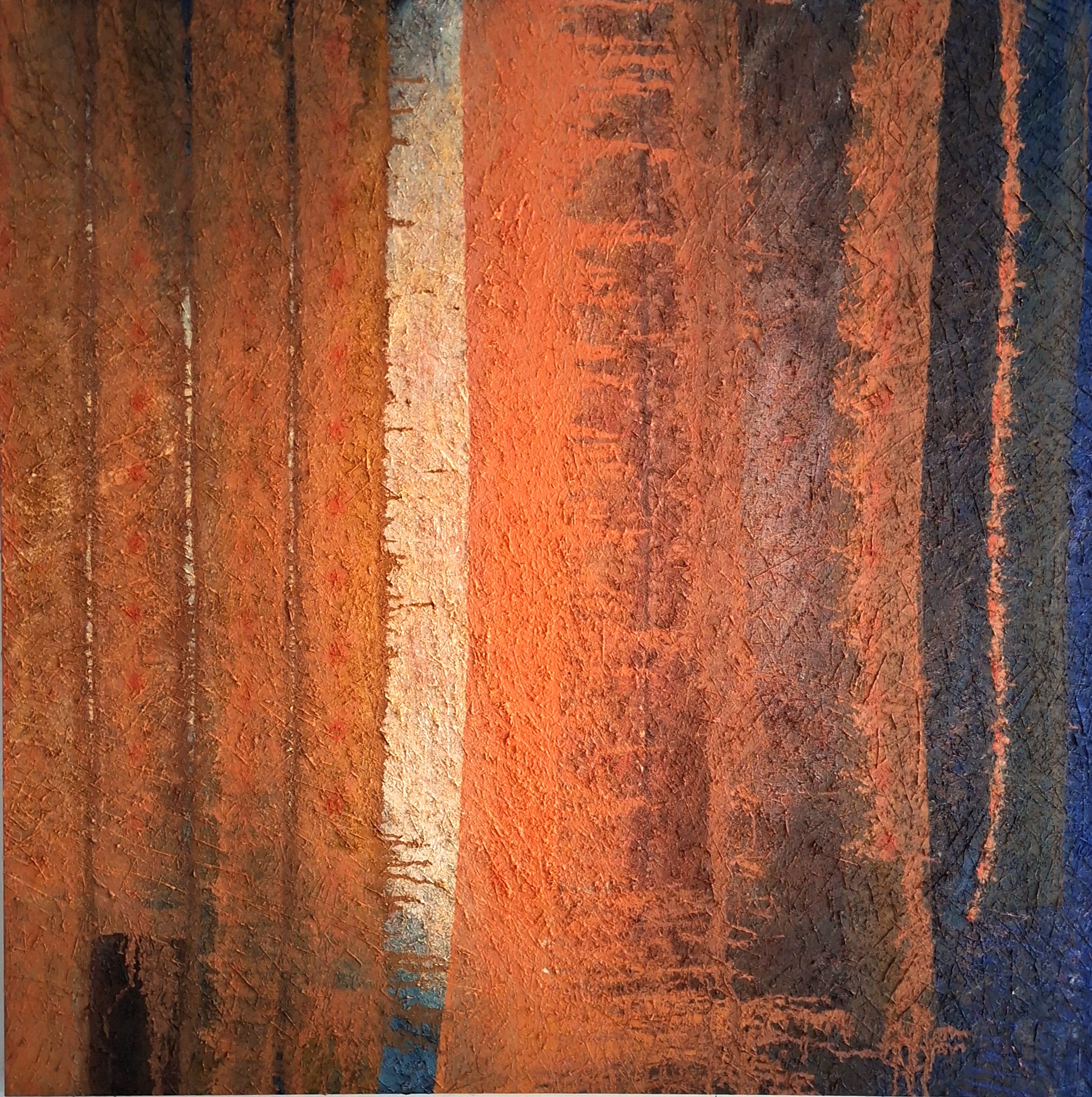 Dan opeens dient het zich aan. Het verlangen opent de ogen voor buiten. In dat stille buiten proef ik de levenskracht, onderga het. De wording van het onbenoembare dat wat nog geen naam heeft. Als ik me openstel komen de doeken ook en zie ik nieuwe beelden.
